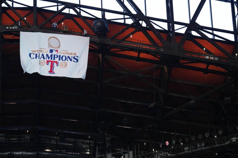 On their 64th MLB Opening Day, playing in their fifth stadium and second city, the Texas Rangers unveiled their first World Series banner in franchise history.