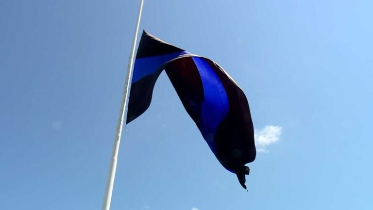 A large “Thin Blue Line” flag flying above a business in Greenville County, South Carolina, was damaged early Friday morning, according to the Greenville County Sheriff’s Office. (The video above shows the flag when it was first posted.) Investigators responded to Upstate Granite Solutions on New Easley Highway for a report of malicious damage at the business. He said he received a call around 7:30 a.m. after receiving the call. Deputies said two people were seen entering the property and damaged the flag. MORE NEWS: Off-duty law officer shoots, injures person, state investigation ramps up, officials say incident remains under investigation. No suspects have been identified at this time. MORE NEWS: Cause of death for slain Furman University football player announced A 60-foot-by-100-foot flag was hung at the store to honor Easley Police Officer Matthew Hare. he died in the line of duty. The company said the flag is an ongoing symbol of remembrance, honor and gratitude to all those who have put their lives on the line to keep our communities safe.