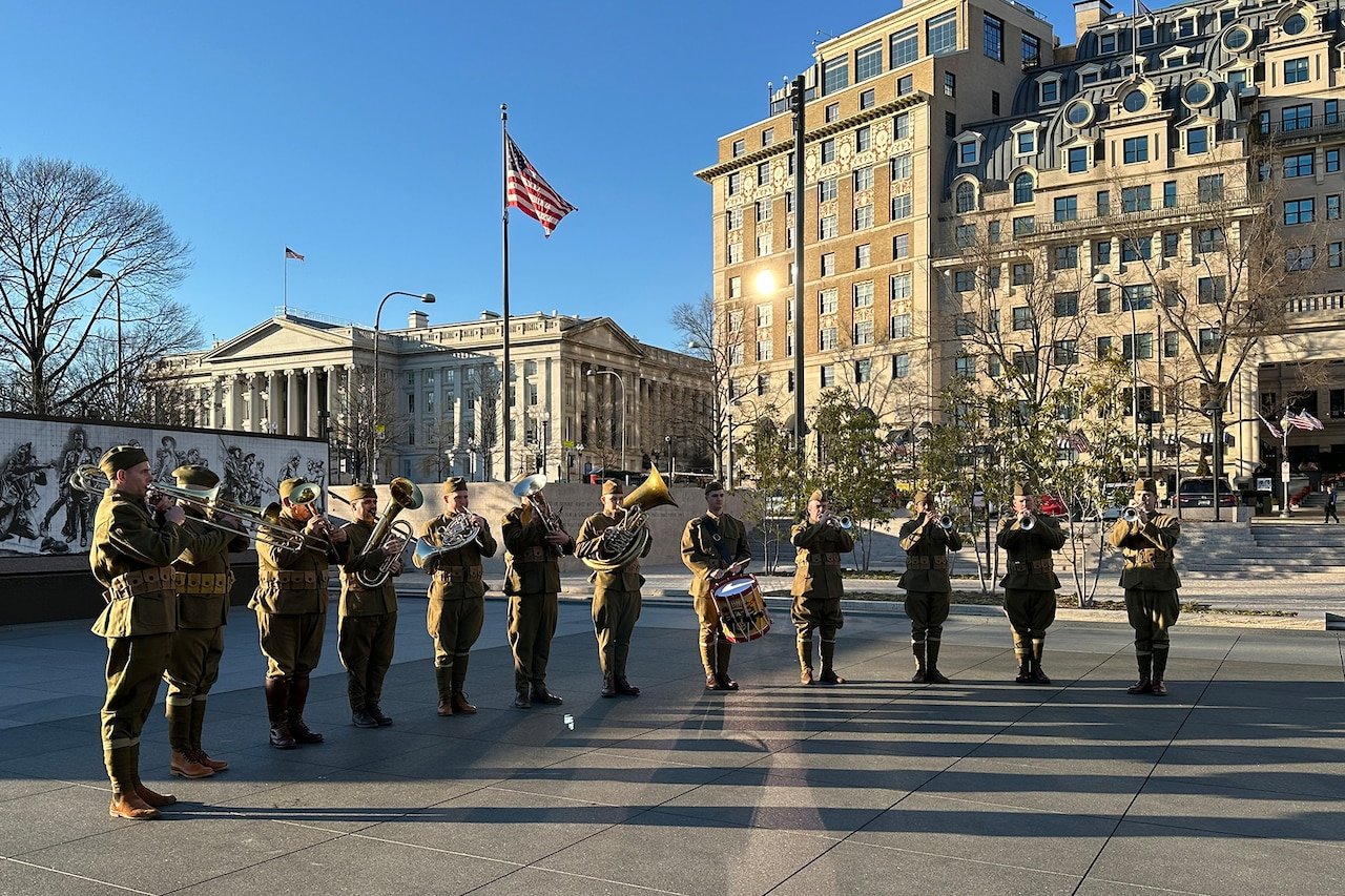 Villanueva and Paul said the daily ritual brings the monument to life, often sparking conversations between passersby and the musicians playing in World War I-era military uniforms.